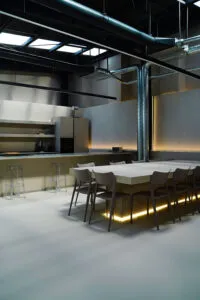 The Set, infine, è lo spazio dedicato alla produzione visiva: un ambiente tecnico, essenziale e versatile dove luce, materia e immagine si fondono per generare contenuti ad alto impatto.
